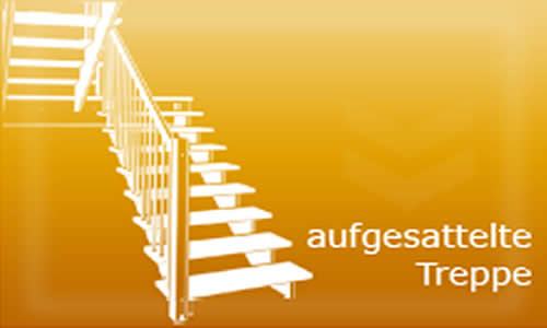 Auf-gesattelte Stiege: Die Wangen sind wie die Stufen ausgenommen und die Stufenbretter liegen auf den Wangen auf.