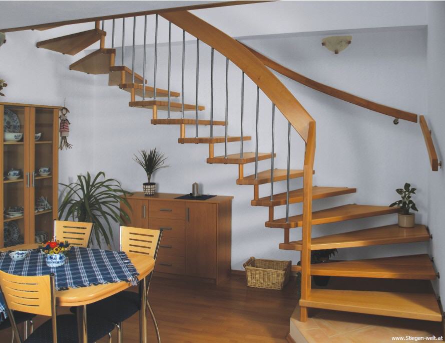 Formen der Stiegen: gerade, ¼, 2x ¼, ½ gewinkelt, mit Podest