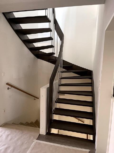 Diese Stiege kann nur mit Edelstahlgeländer kombiniert werden.