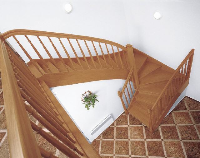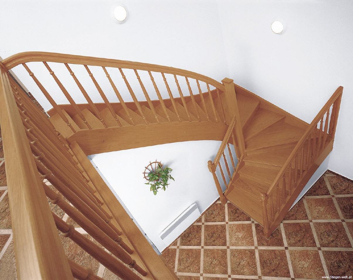Eingestemmte 1/2 gewendelte Stiege in Buche fix, mit Wangen, Stufenbrett und steigendes Geländer (Innenseitig) Stufen Wangen 40 mm 15 Steigungen Ohne Setzstufen und Kinderleisten Geländer einseiti...