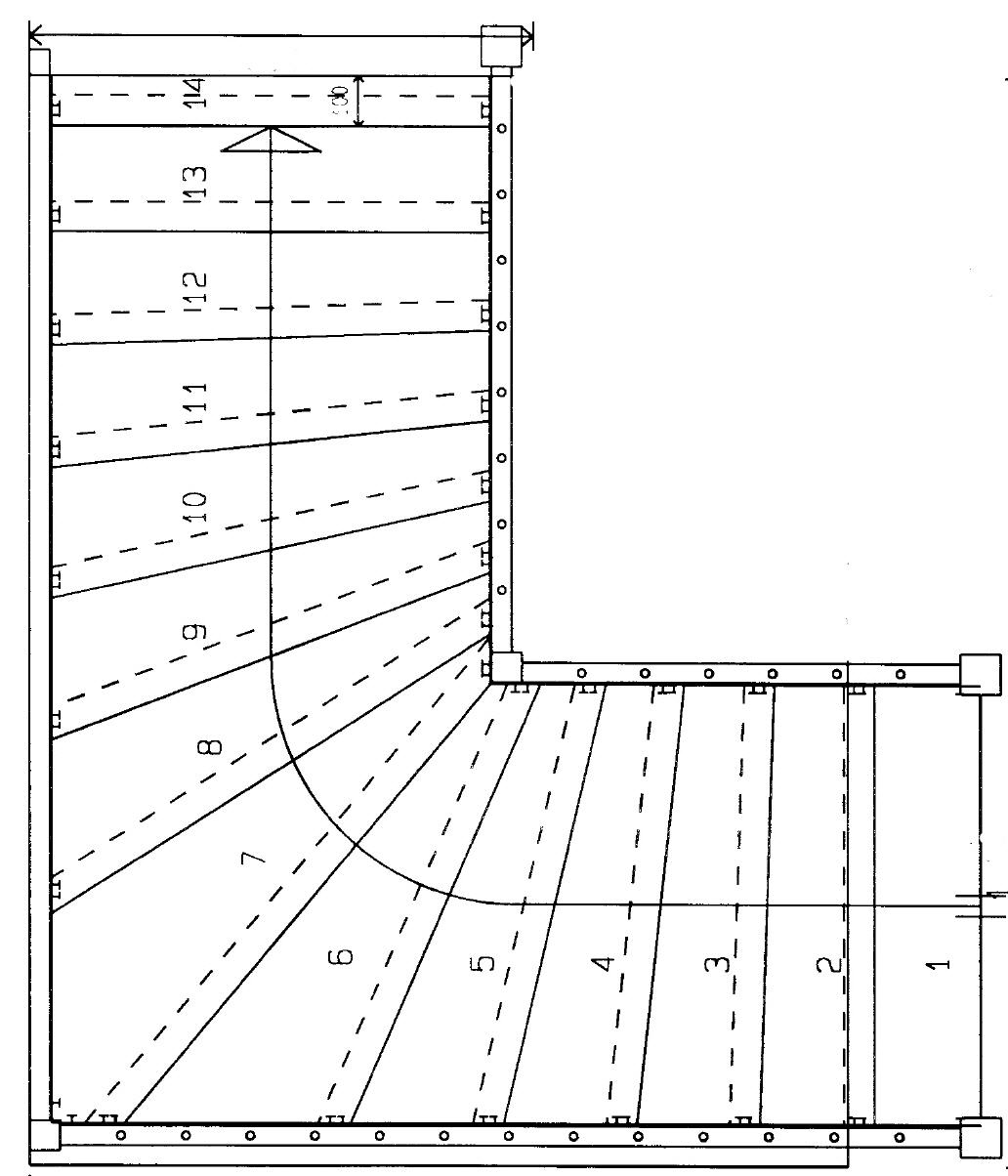 1/4 gewendelte Stiege in Kiefer fix Eingestemmte Stiege, mit Wangen, Stufenbrett und steigendes Geländer (Innenseitig) Stufen Wangen 40 mm 15 Steigungen Ohne Setzstufen und Kinderleisten Geländer einseitig von der Innenseite Stufen ...