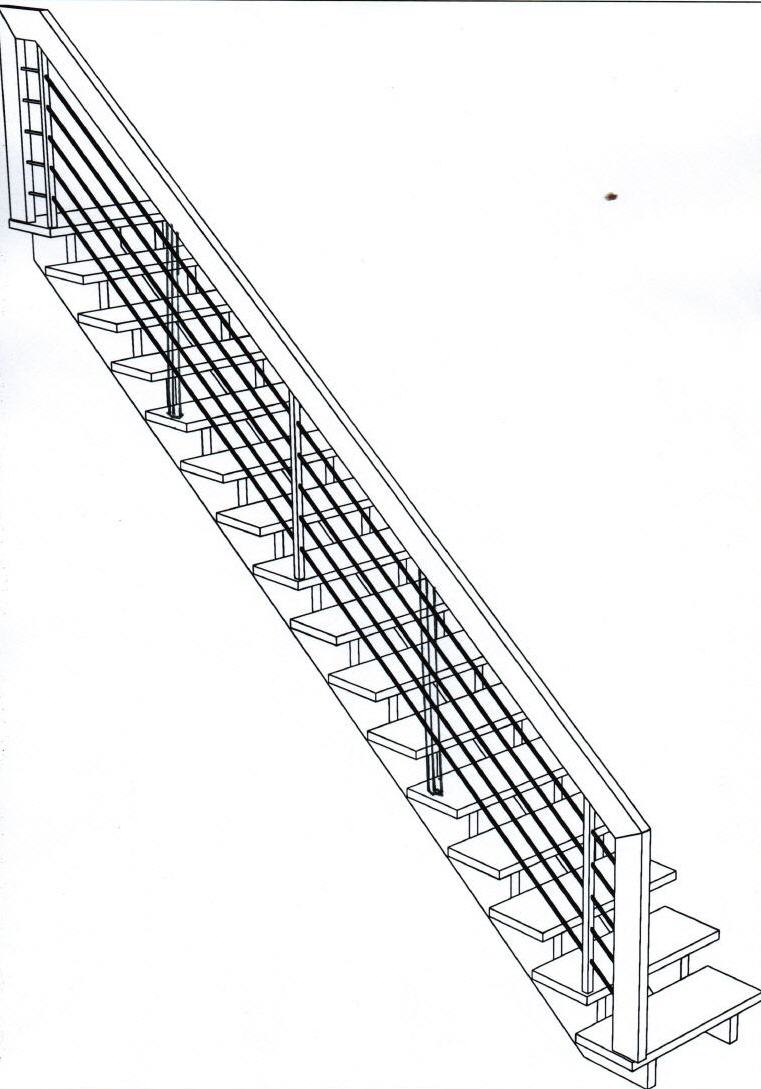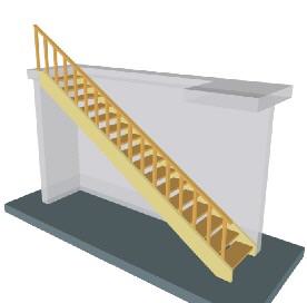Eingestemmte Stiege, mit Wangen, Stufenbrett und steigendes Geländer (Innenseitig) Stufen Wangen 40 mm 15 Steigungen Ohne Setzstufen und Kinderleisten Geländer einseitig von der Innenseite Stufen ...