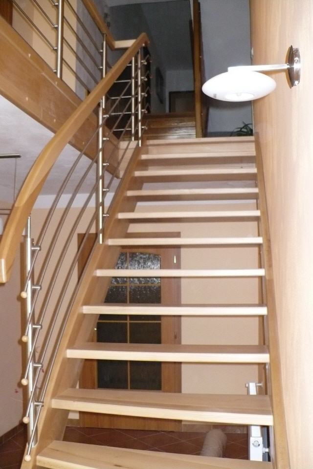 Gerade Stiege in Buche parkett Eingestemmte Stiege, mit Wangen, Stufenbrett und steigendes Geländer (Innenseitig) Stufen Wangen 40 mm 15 Steigungen Ohne Setzstufen und Kinderleisten Geländer einseitig von der Innenseite Stufen ...