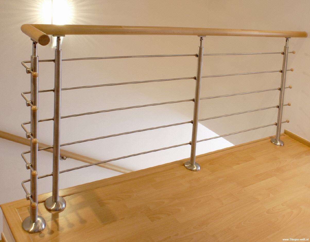 Das Geländer ist kombinierbar mit Holz und Edelstahl